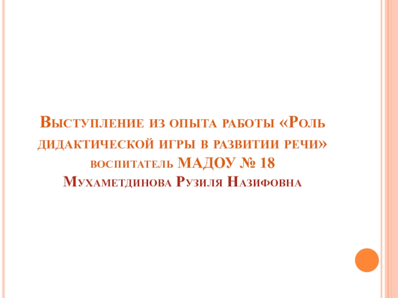 Слайд 6Выступление из опыта работы «Роль дидактической игры в развитии речи»