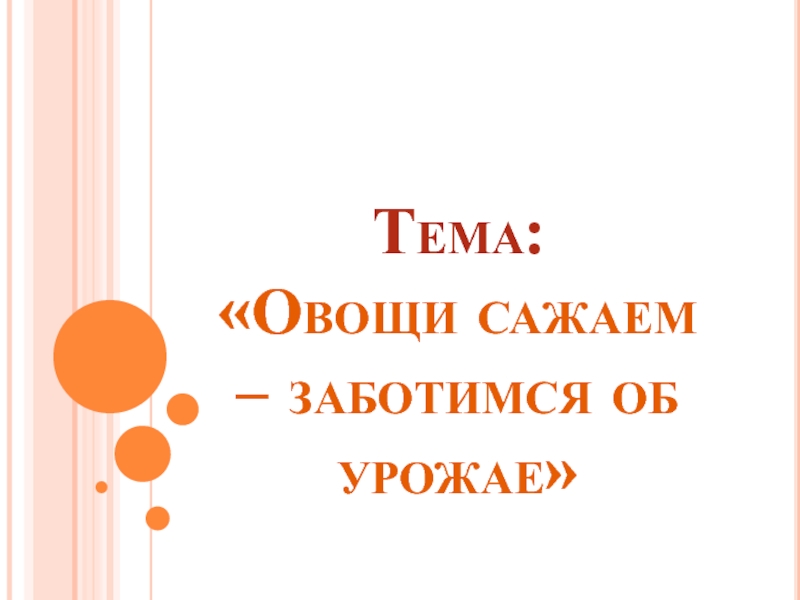 Тема: «Овощи сажаем –заботимся об урожае».