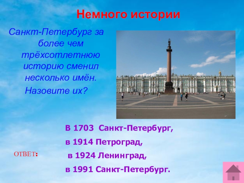 Санкт-Петербург за более чем трёхсотлетнюю историю сменил несколько имён.