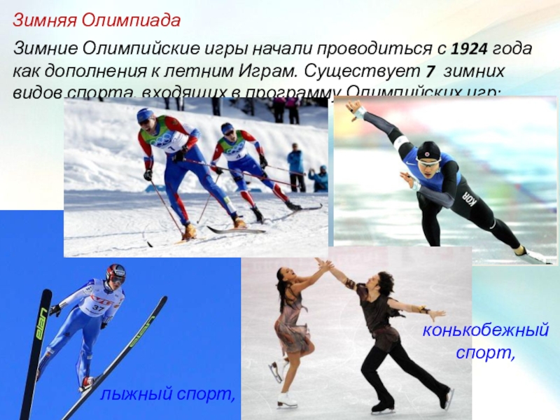 Назовите зимние олимпийские виды спорта.