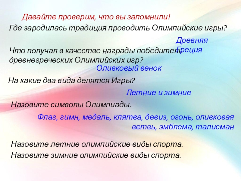 Назовите символы Олимпиады.