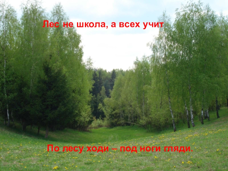 Лес не школа, а всех учитПо лесу ходи – под ноги гляди.
