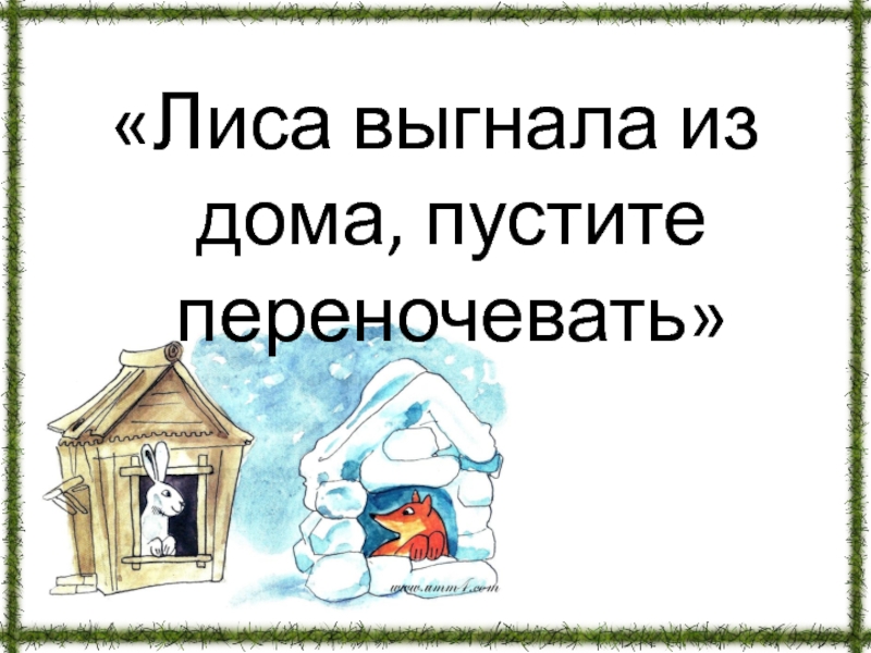 Слайд 67«Лиса выгнала из дома, пустите переночевать»