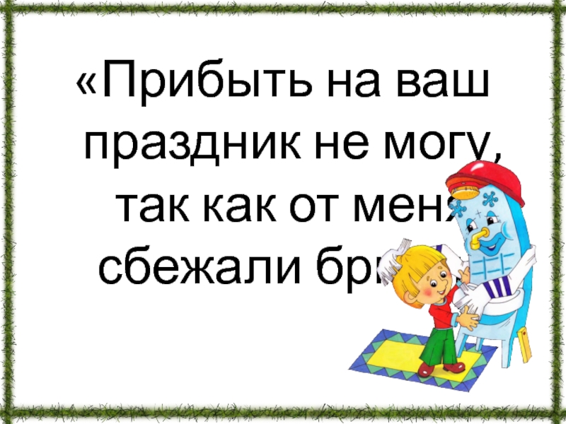 Слайд 69«Прибыть на ваш праздник не могу, так как от меня сбежали
