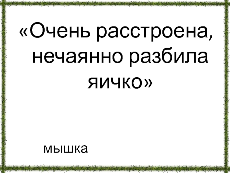 мышка«Очень расстроена, нечаянно разбила яичко»