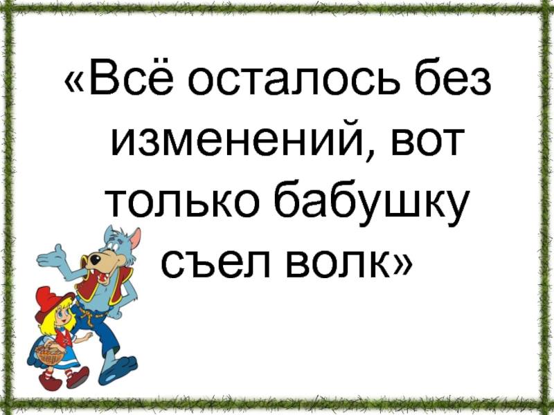 Слайд 66«Всё осталось без изменений, вот только бабушку съел волк»