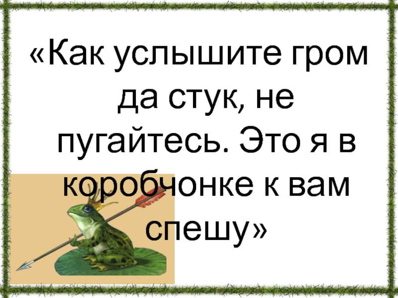 Слайд 68«Как услышите гром да стук, не пугайтесь. Это я в коробчонке