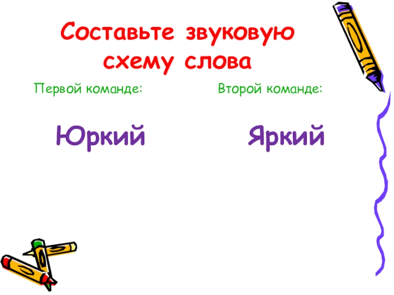 Составьте звуковую схему словаПервой команде:          Второй команде: Юркий