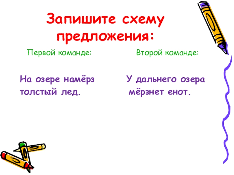 Запишите схему предложения:  Первой команде:          Второй команде:На