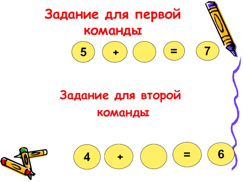 Задание для первой команды Задание для второй команды5 +=74 +=6