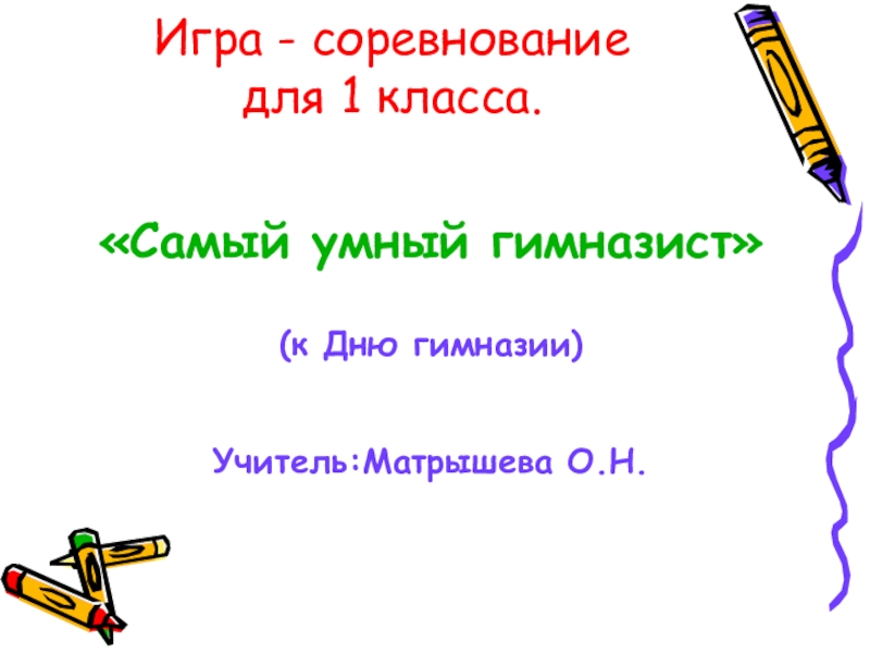 Игра - соревнование для 1 класса.«Самый умный гимназист»(к Дню гимназии)Учитель:Матрышева О.Н.