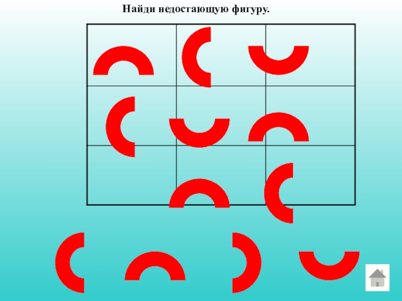 Слайд 18Найди недостающую фигуру.