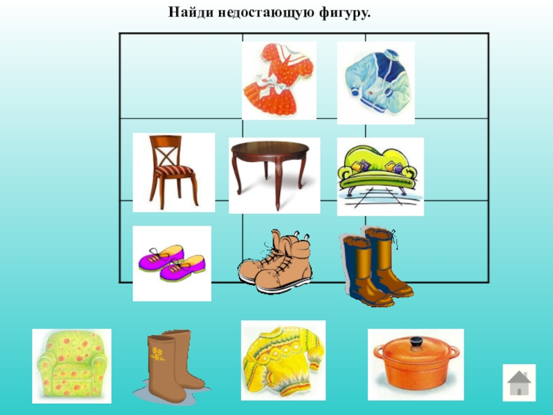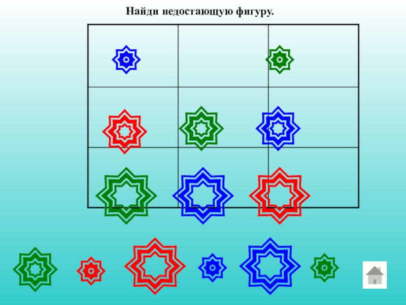 Слайд 20Найди недостающую фигуру.