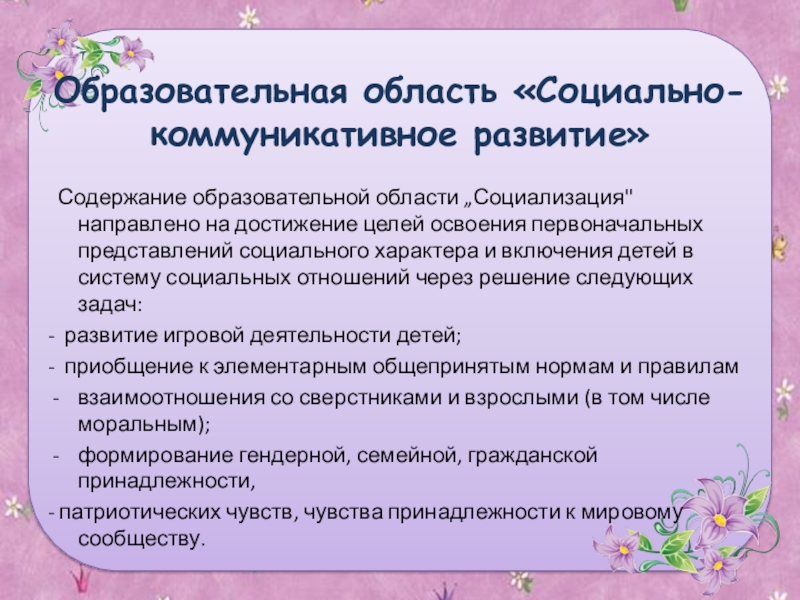 Слайд 3Образовательная область «Социально-коммуникативное развитие»