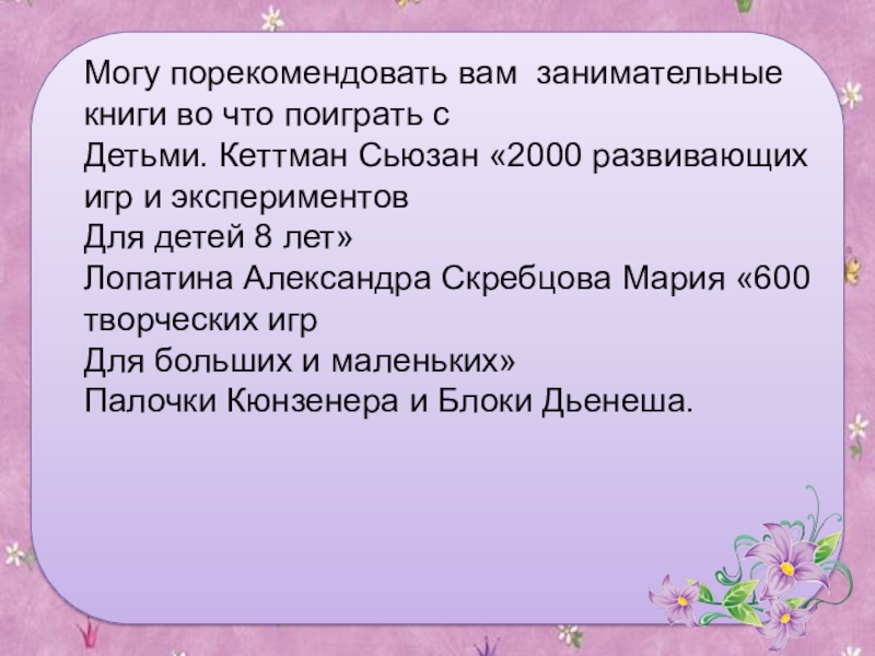 Слайд 21Могу порекомендовать вам занимательные книги во что поиграть с