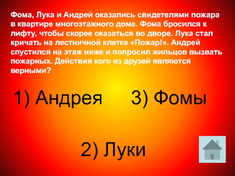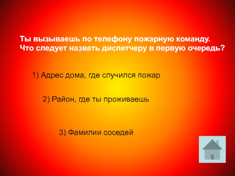 1) Адрес дома, где случился пожар