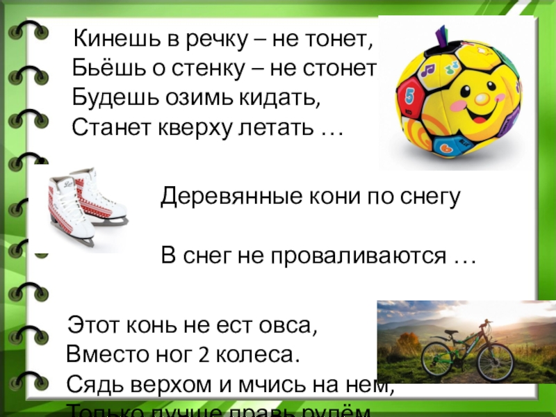 Слайд 11 Кинешь в речку – не тонет,