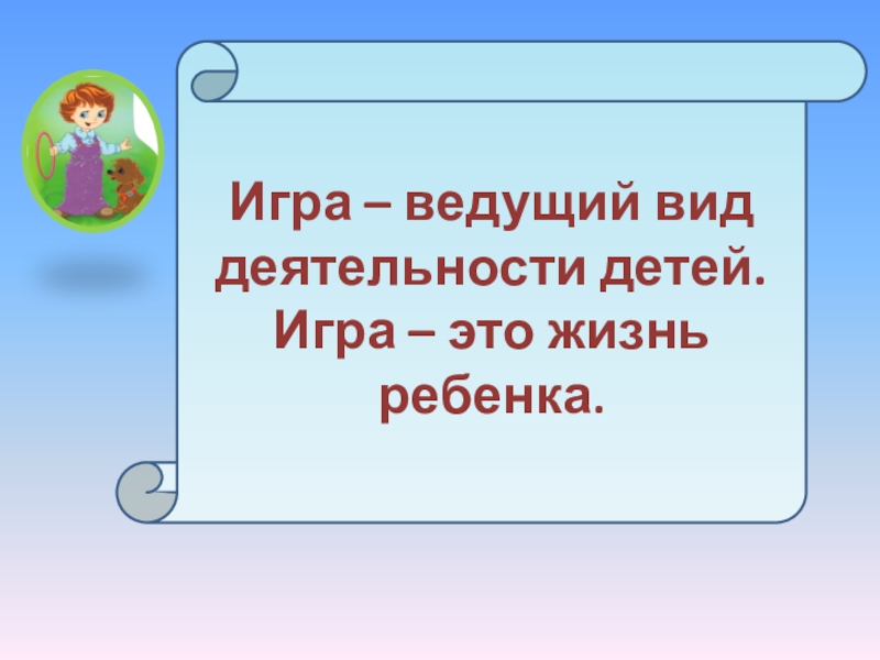 Слайд 1«Игра – это огромное светлое окно, через которое в духовный мир