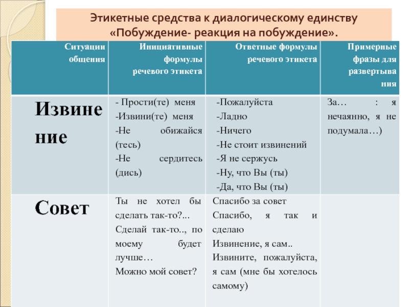 этикета в процессе работы над диалогически единством «побуждение- реакция на побуждение» предполагает: