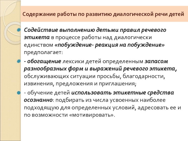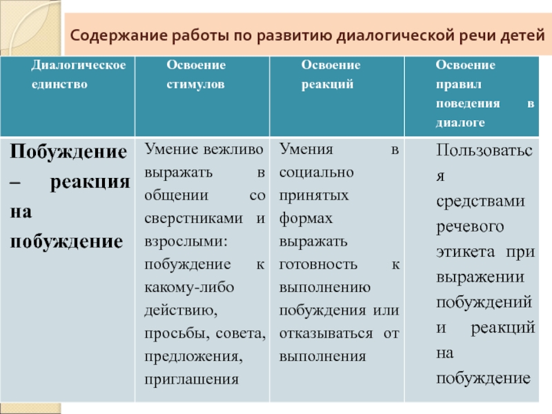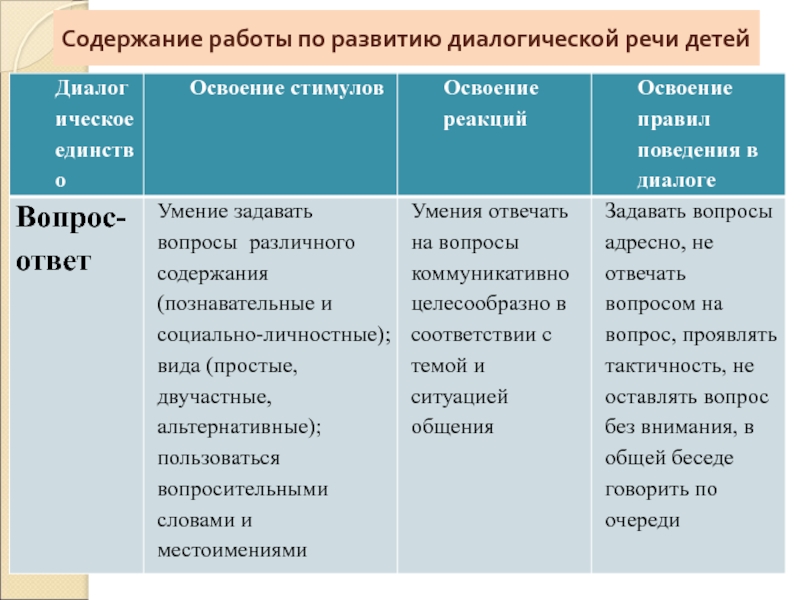 Слайд 7Содержание работы по развитию диалогической речи детей