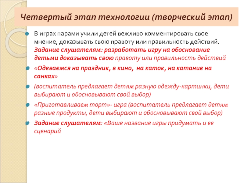 Слайд 49В играх парами учили детей вежливо комментировать свое мнение, доказывать свою