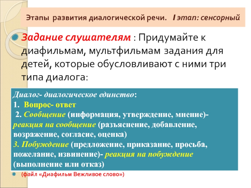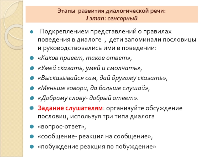 Слайд 17Этапы развития диалогической речи. I этап: сенсорный