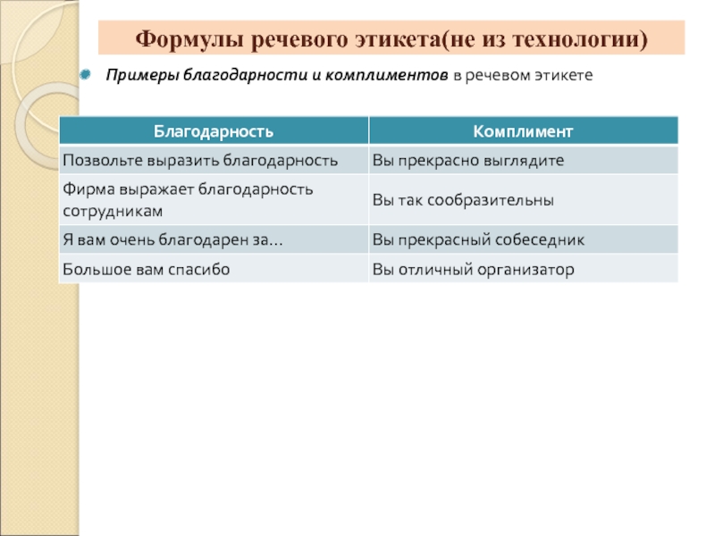 Слайд 16Примеры благодарности и комплиментов в речевом этикете