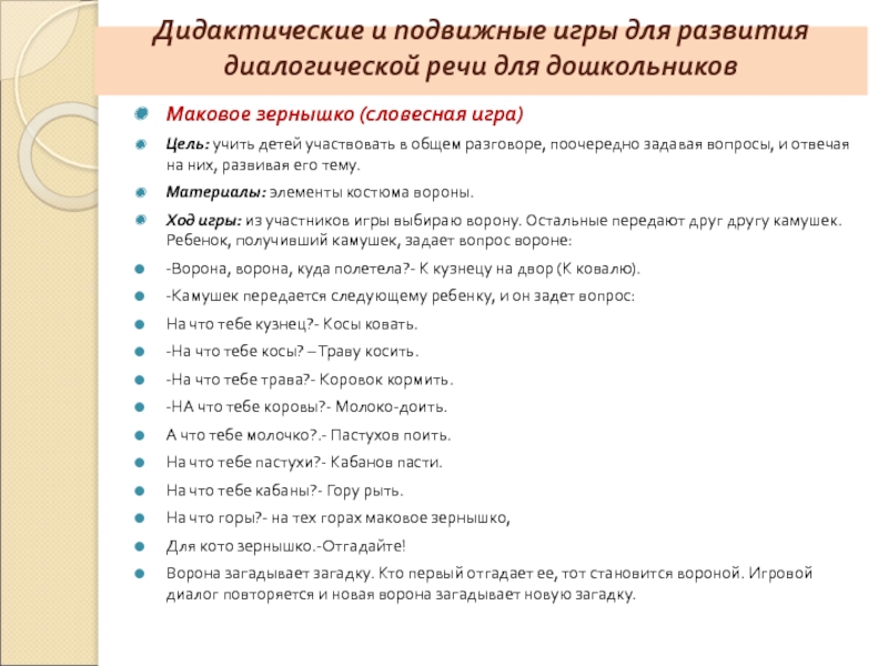 Дидактические и подвижные игры для развития диалогической речи для дошкольников