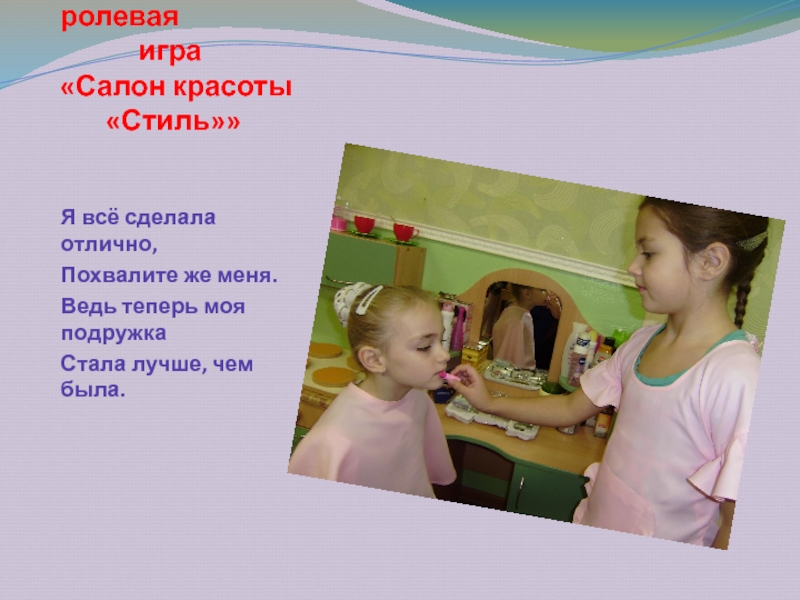 о играх «Детское кафе», «Супермаркет», «Модельное агентство», «Поликлиника № 130», «Салон красоты