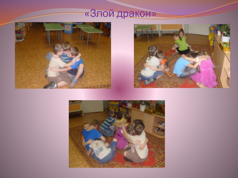 Игра «ЗЛОЙ ДРАКОН». Дракон не выносит ласковых, добрых слов и дети должны объединится, чтобы он их не забрал.