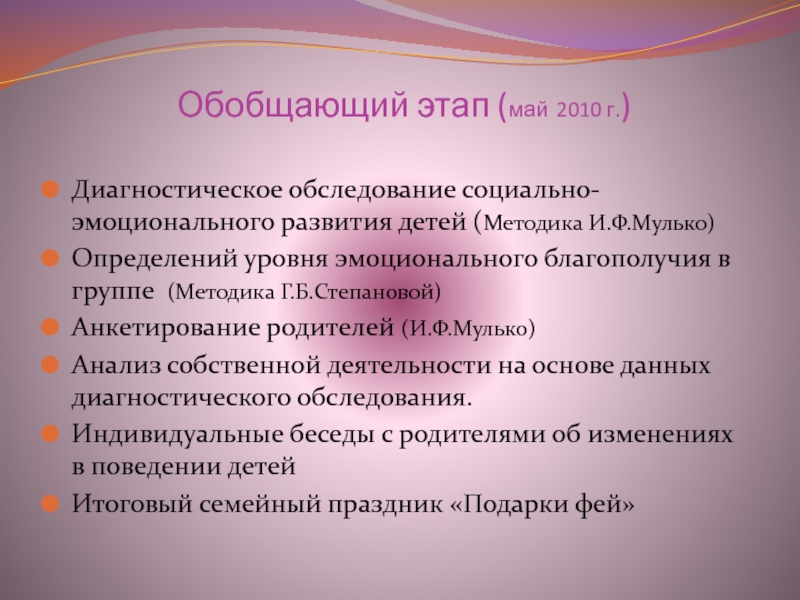 Диагностическое обследование социально-эмоционального развития детей (Методика И.Ф.Мулько)