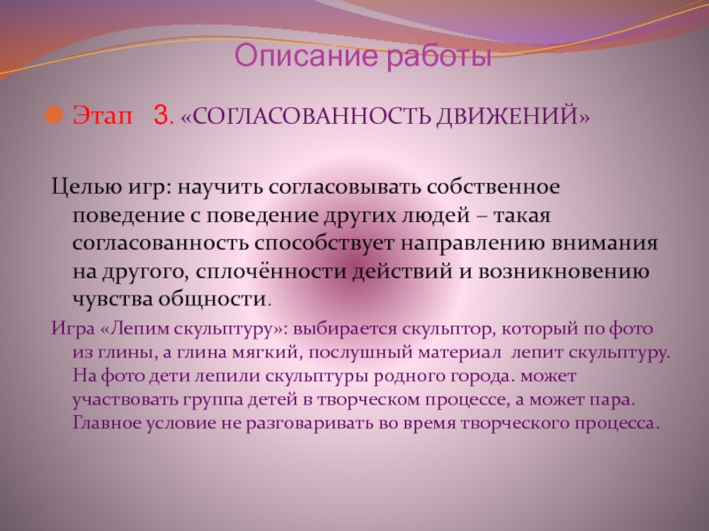 Этап 3. «СОГЛАСОВАННОСТЬ ДВИЖЕНИЙ»
