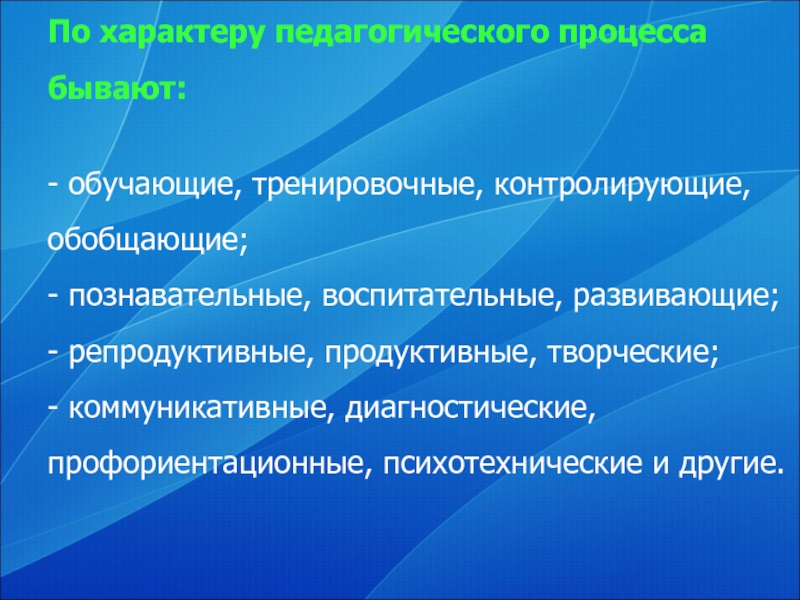 Слайд 5По характеру педагогического процесса бывают: