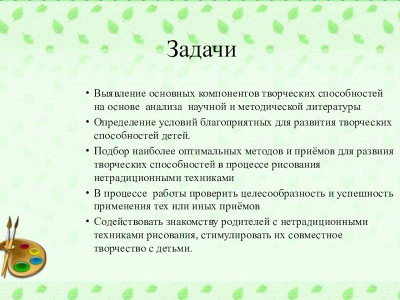 Содействовать знакомству родителей с нетрадиционными техниками рисования, стимулировать их совместное творчество с детьми.