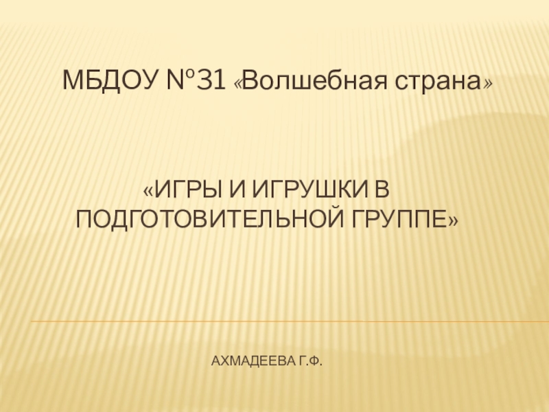 Слайд 1«игры и игрушки в подготовительной группе» ахмадеева г.ф.