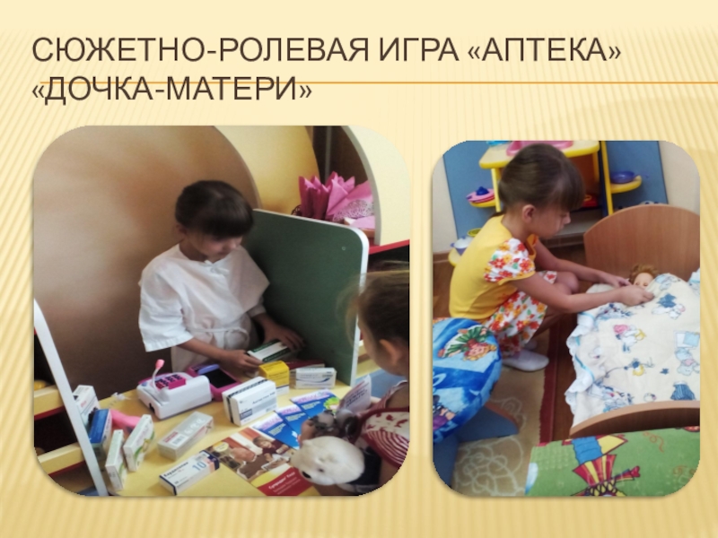 Слайд 10Сюжетно-ролевая игра «Аптека» «дочка-матери»