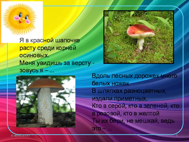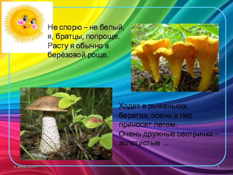 Ходят в рыженьких беретах, осень в лес приносят летом.