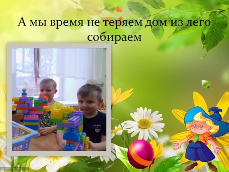 Слайд 5 А мы время не теряем дом из лего собираем