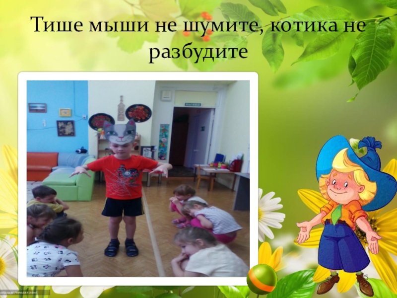 Слайд 12Тише мыши не шумите, котика не разбудите