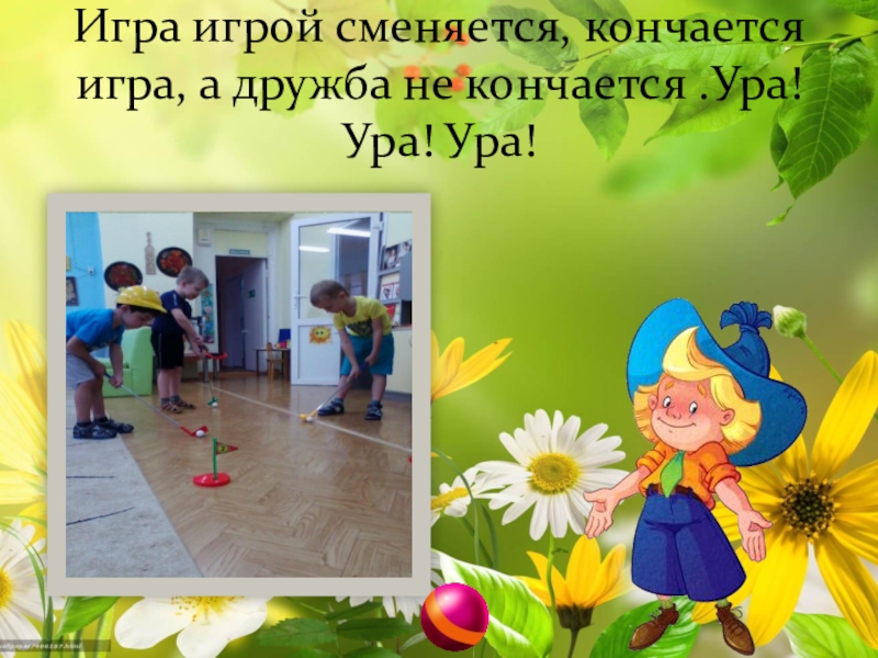 Слайд 9Игра игрой сменяется, кончается игра, а дружба не кончается .Ура! Ура!