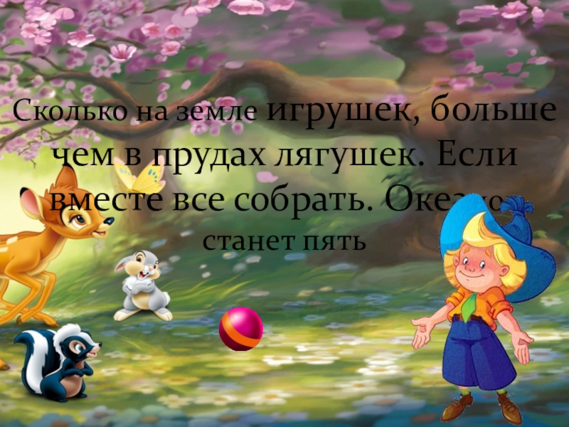 Слайд 15Сколько на земле игрушек, больше чем в прудах лягушек. Если вместе