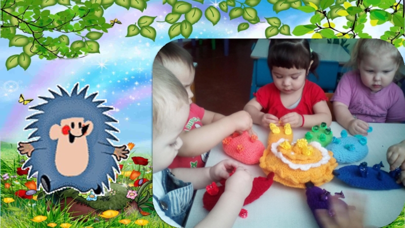 прищипывают разноцветные крабики-цветочки: дети запоминают цвет и происходит развитие тонкой моторики рук)