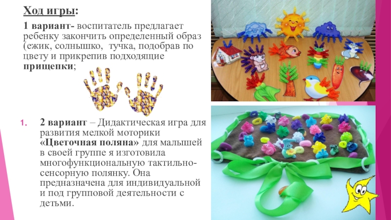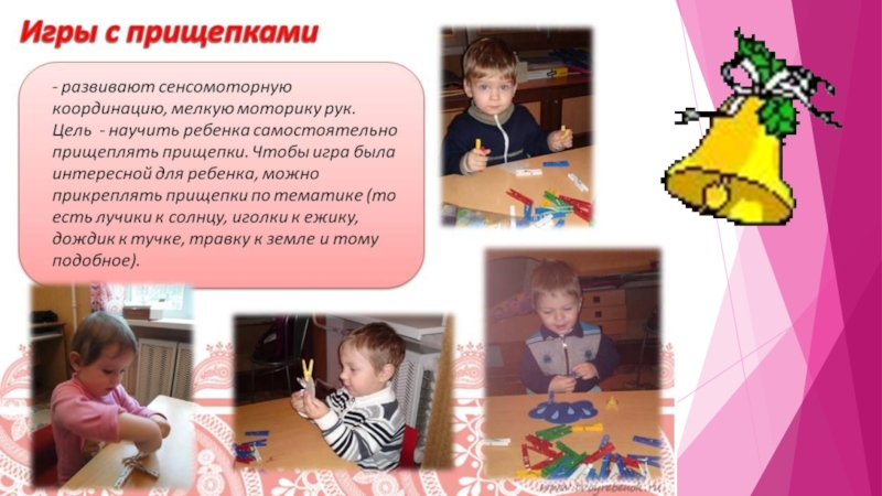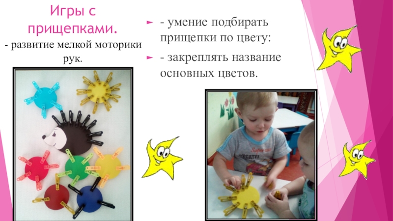 Слайд 1«Игры на развитие мелкой моторики у детей раннего возраста «Прищепалочки»