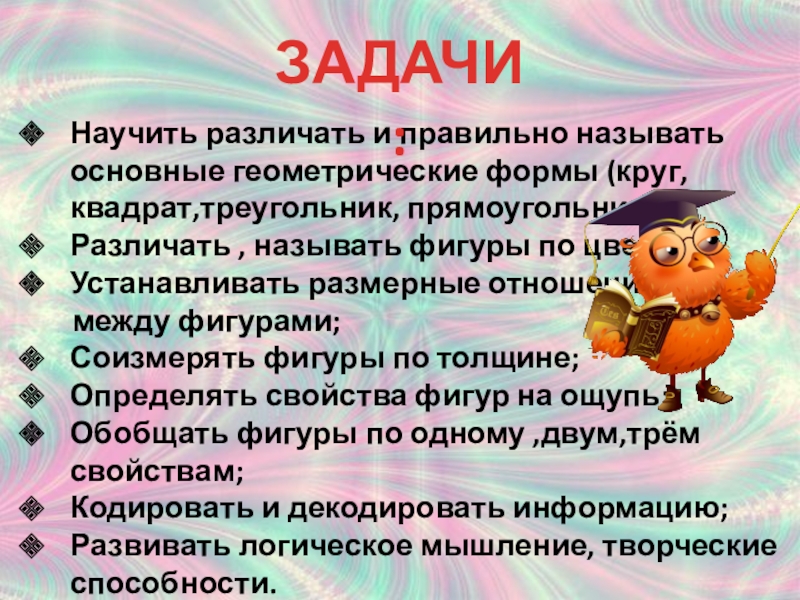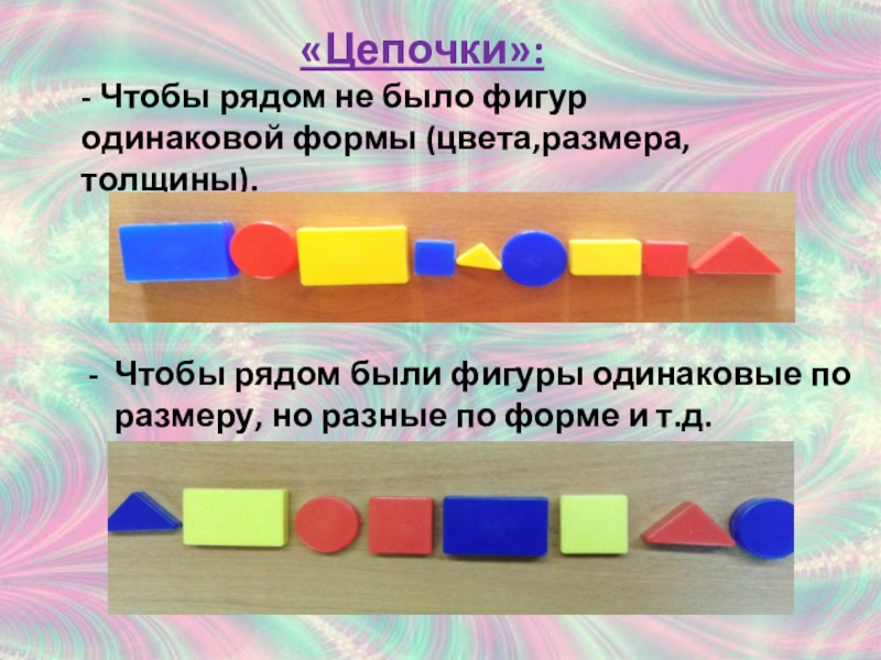 Чтобы рядом были фигуры одинаковые по размеру, но разные по форме и т.д.