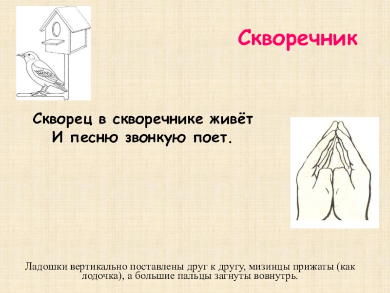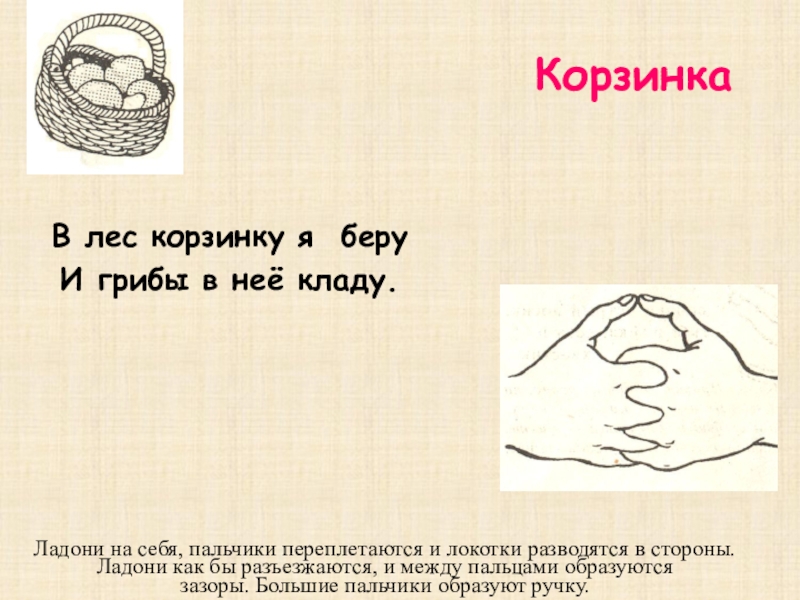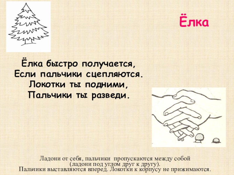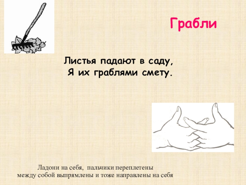 Пальцы растопырены и подняты вверх. Шевелить кистями и пальцами.