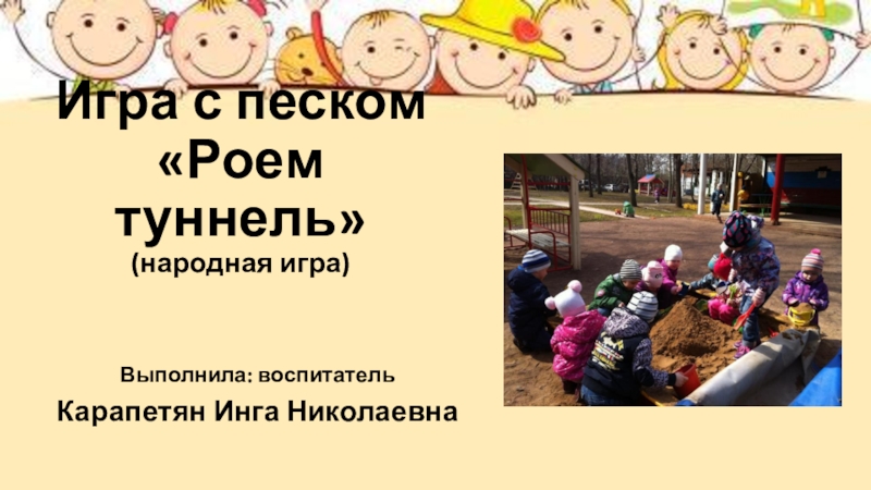 Игра с песком  «Роем туннель» (народная игра)Выполнила: воспитатель Карапетян Инга Николаевна
