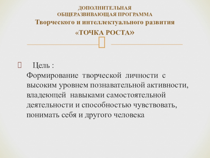 ОБЩЕРАЗВИВАЮЩАЯ ПРОГРАММА Творческого и интеллектуального развития «ТОЧКА РОСТА»