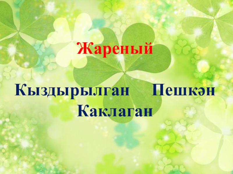 Слайд 15Жареный Кыздырылган Пешкән Каклаган
