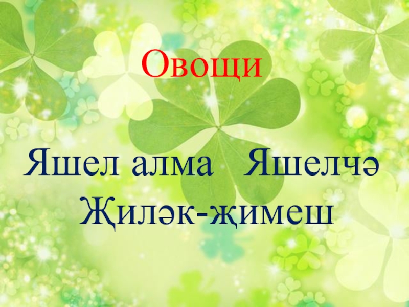 Слайд 9Овощи Яшел алма Яшелчә Җиләк-җимеш