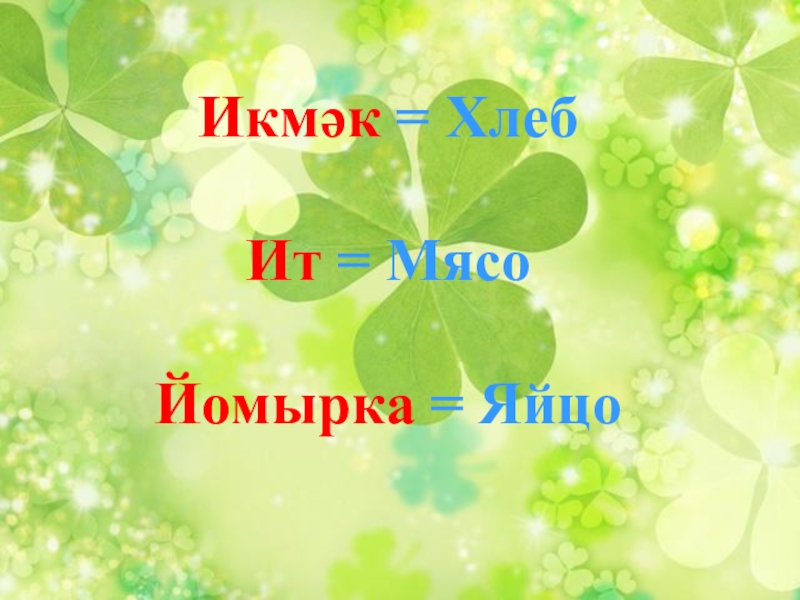 Икмәк = Хлеб         Ит = Мясо  Йомырка =